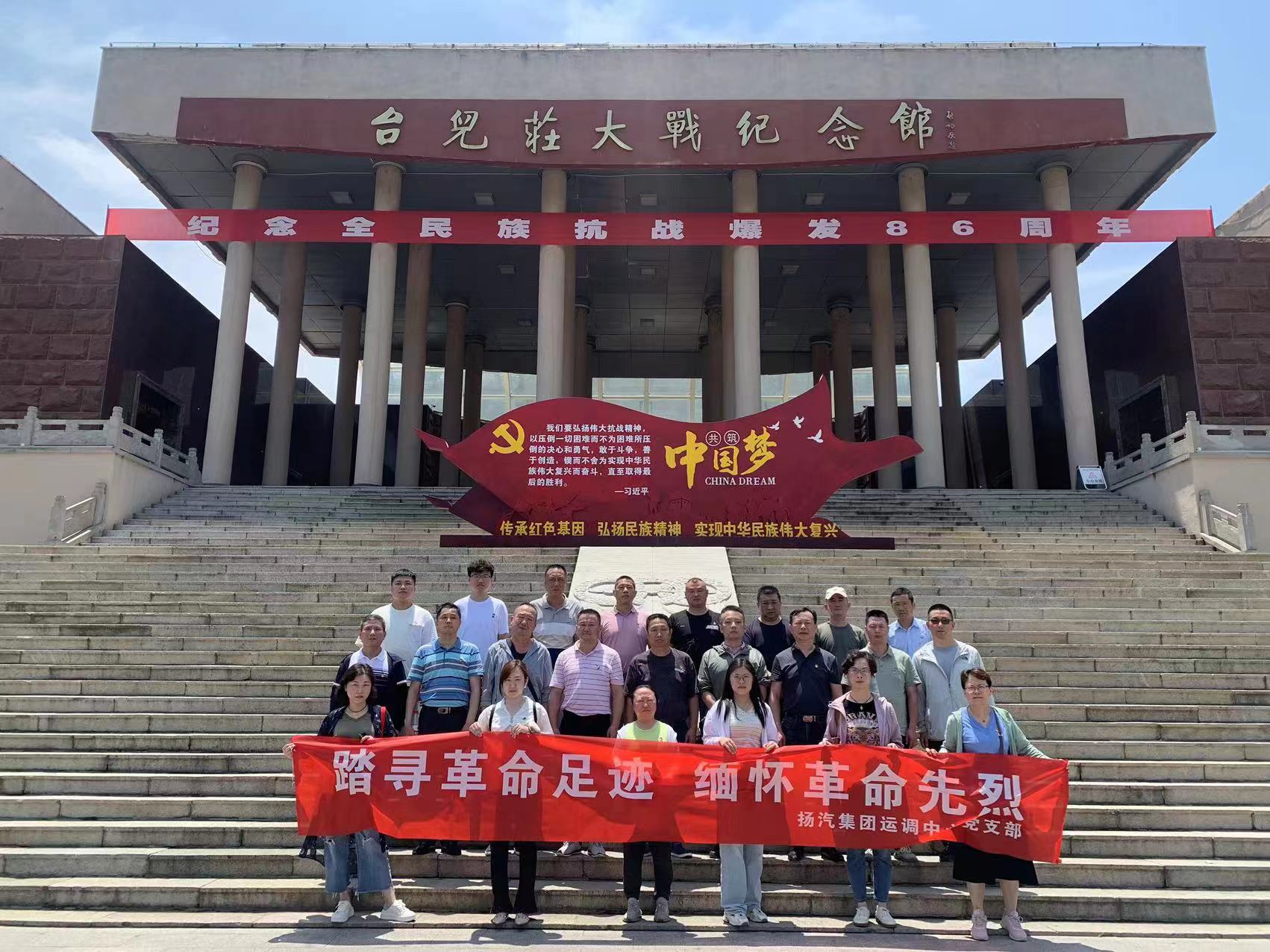 在慶祝建黨102周年暨紀(jì)念“七七事變”86周年之際,為緬懷革命先烈,繼承和發(fā)揚(yáng)黨的光榮傳統(tǒng)和優(yōu)良作風(fēng),7月7日,揚(yáng)汽集團(tuán)運(yùn)調(diào)中心黨支部開展“踏尋革命足跡,緬懷革命先烈”紅色之旅主題黨日活動,組織全體在崗黨員、積極分子和部分優(yōu)秀員工前往臺兒莊大戰(zhàn)紀(jì)念館,實(shí)地接受愛國主義教育和革命傳統(tǒng)教育。